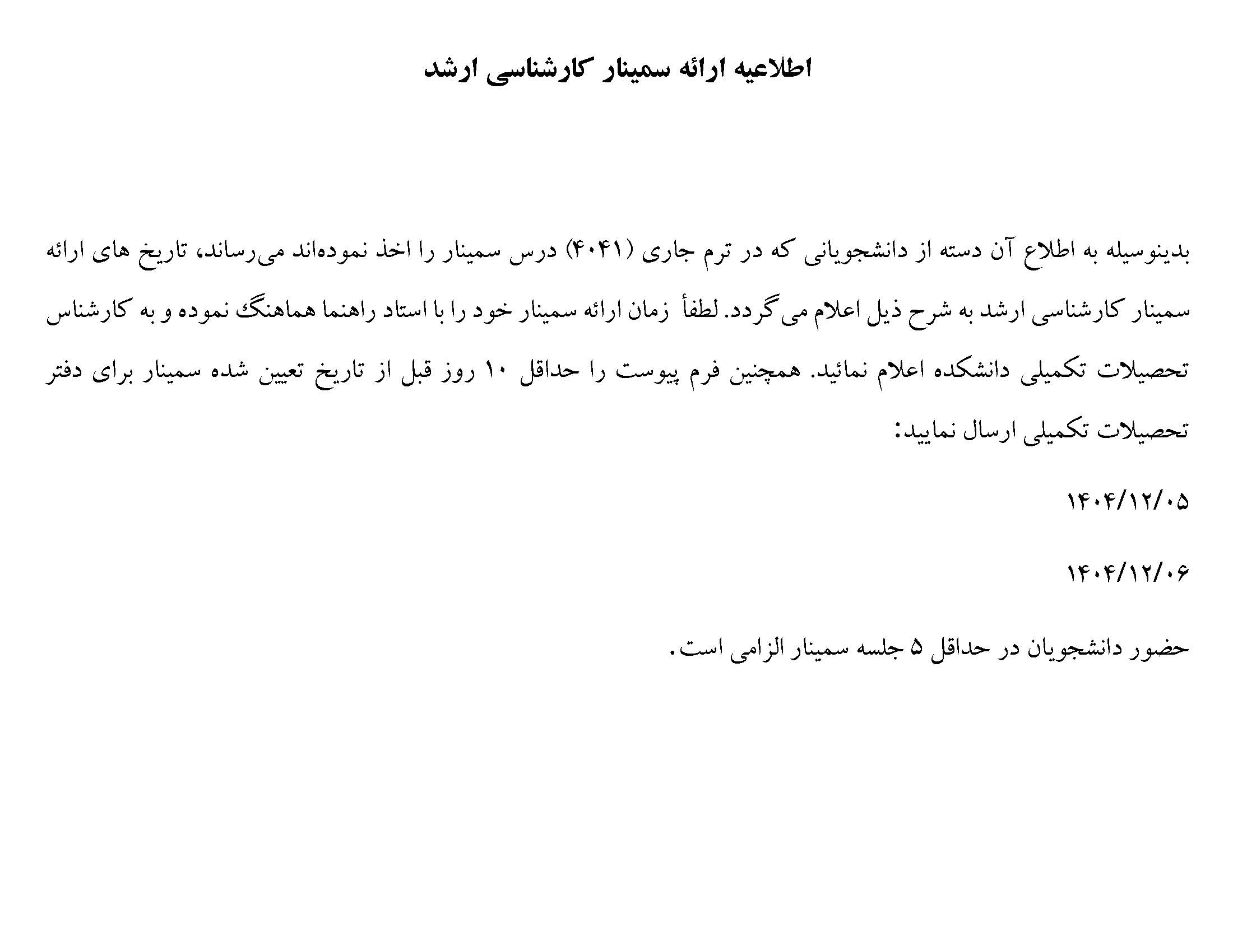 اطلاعیه ارائه سمینار کارشناسی ارشد