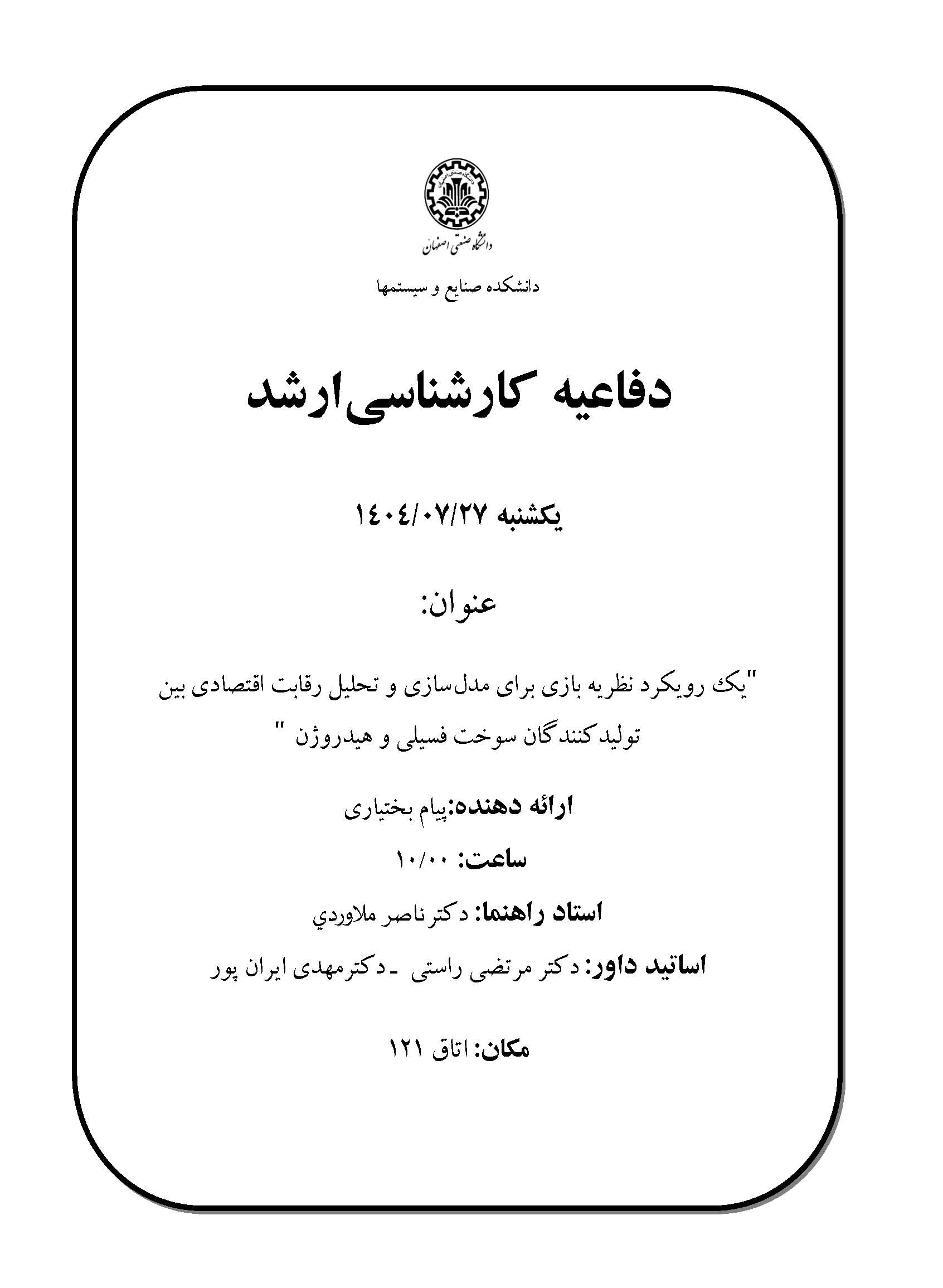 اطلاعیه دفاع کارشناسی ارشد(پیام بختیاری)