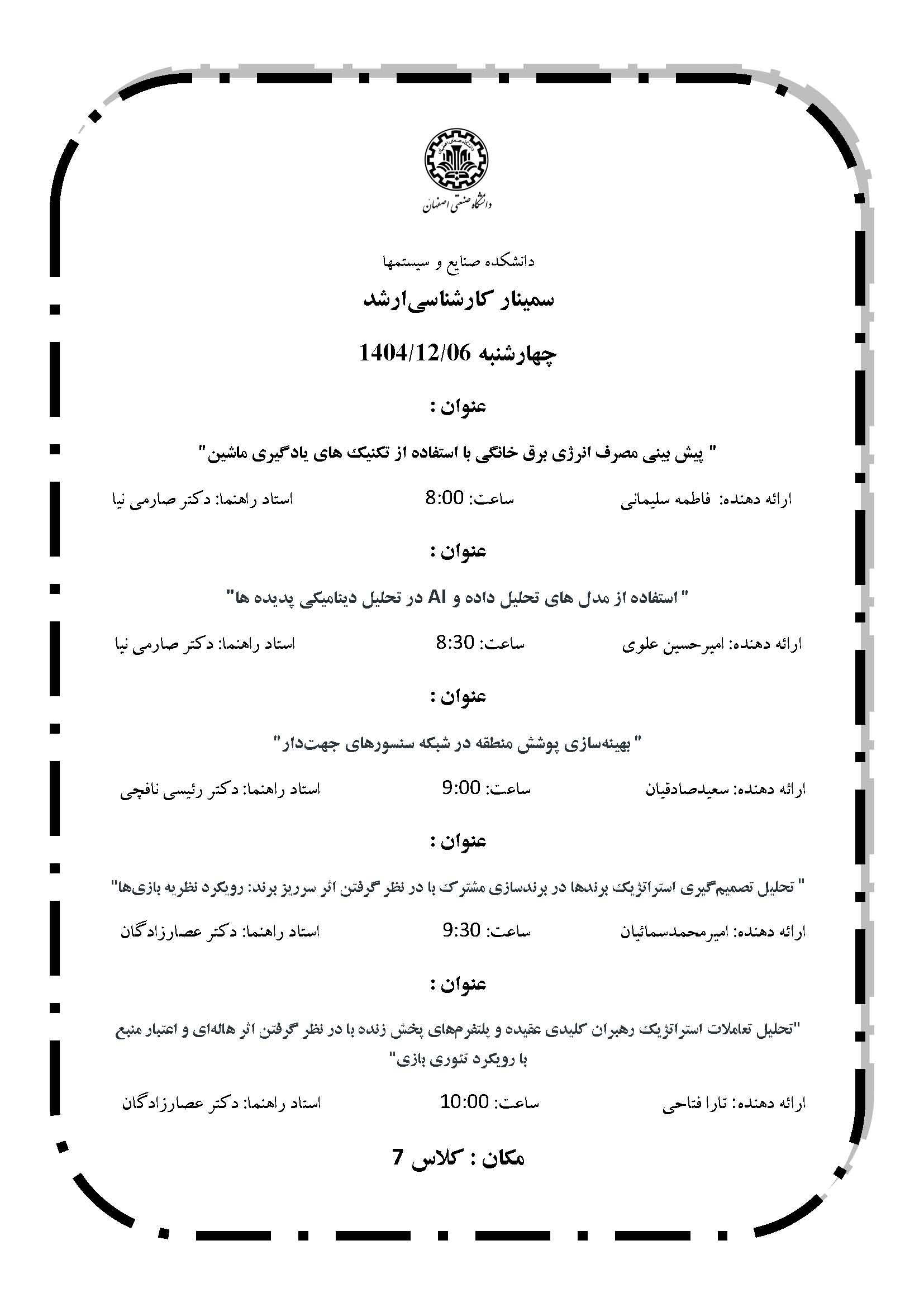 چهارشنبه 1404/12/06 شروع از ساعت 8