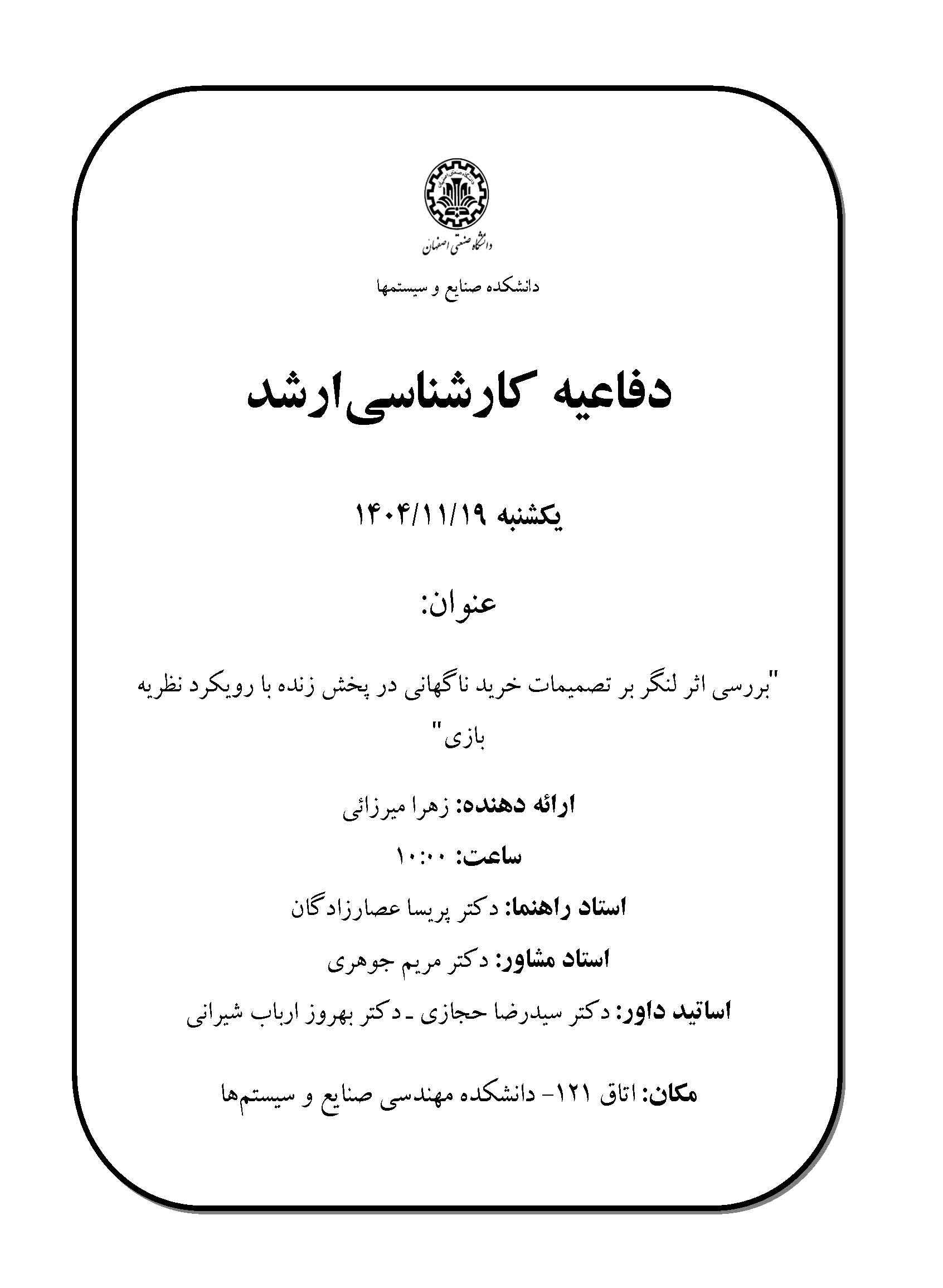 فرم اطلاعیه دفاع کارشناسی ارشد - زهرا میرزائی