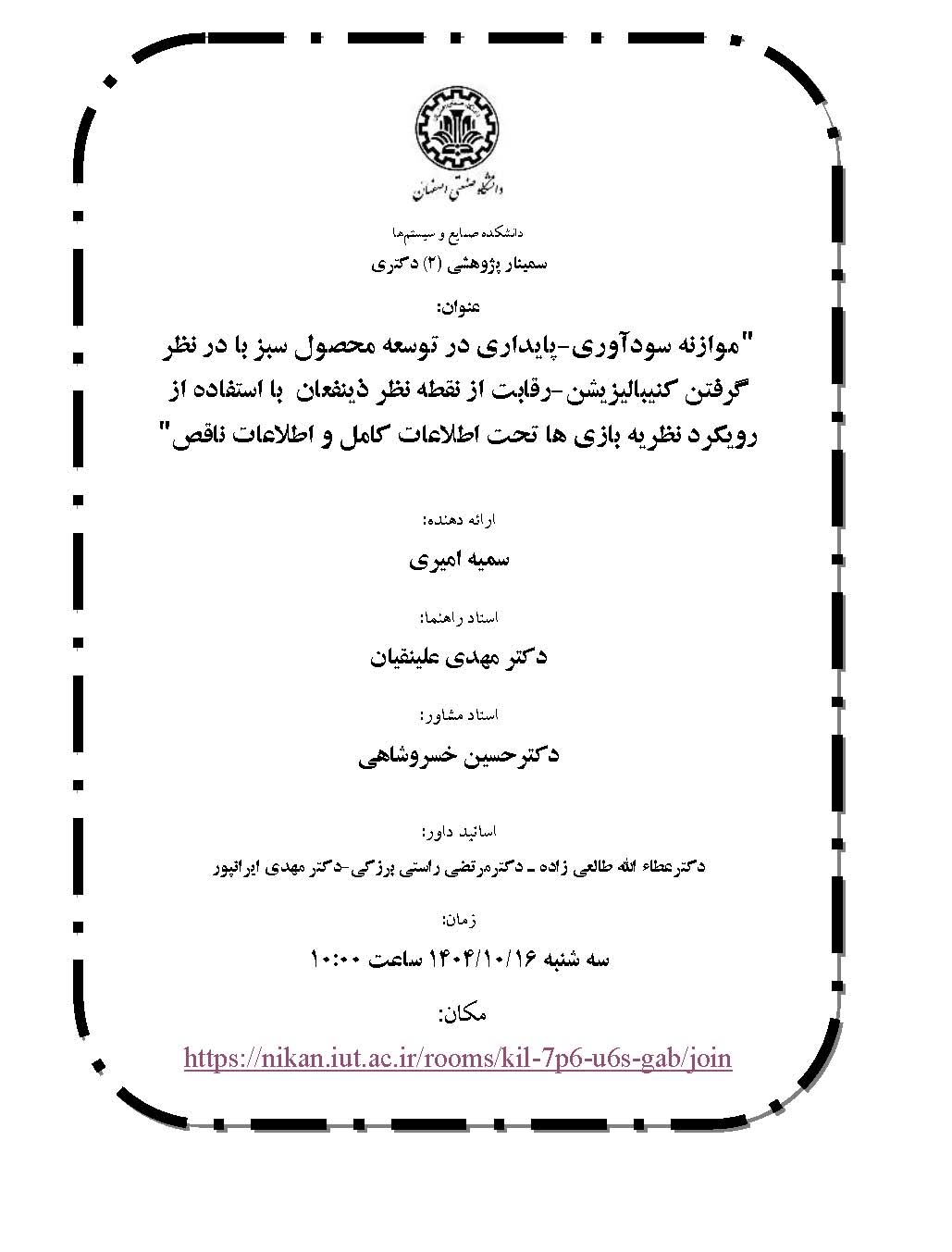 فرم اطلاعیه سمینار پژوهشی 2دکترا - سمیه امیری 16 فرم اطلاعیه سمینار پژوهشی 2دکترا - سمیه امیری 16.pdf لینک سمینار: https://nikan.iut.ac.ir/rooms/kil-7p6-u6s-gab/join