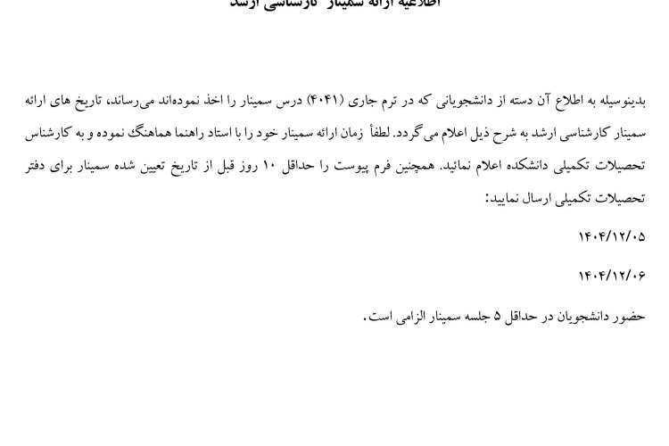 اطلاعیه ارائه سمینار کارشناسی ارشد
