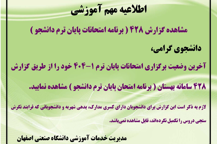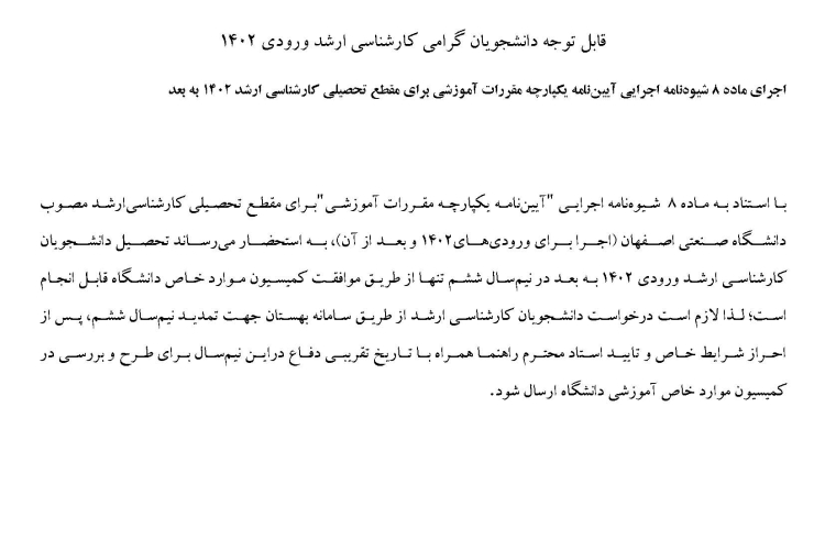 قابل توجه دانشجویان کارشناسی ارشد ورودی 1404