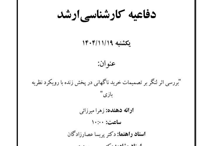 اطلاعیه دفاع کارشناسی ارشد(زهرا عبدالهی)