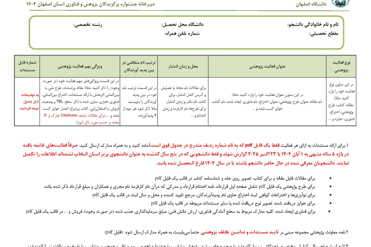فراخوان معرفي دانشجويان برتر استان در سال 1404